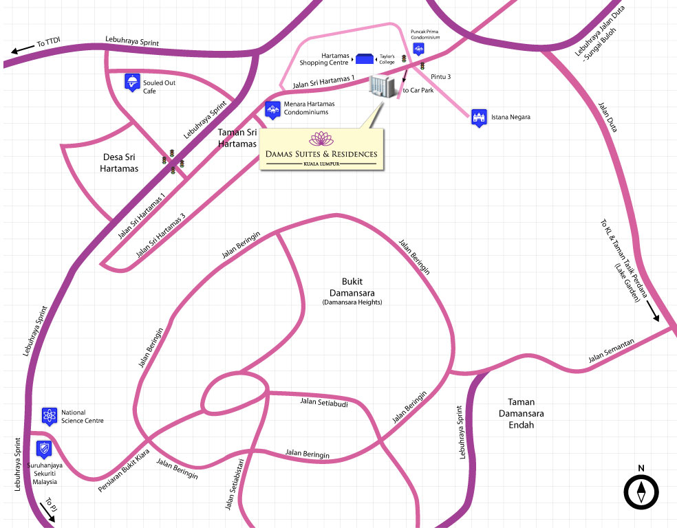 斯里哈达马斯(Sri Hartamas)是吉隆坡市的独家飞地,距离吉隆坡市中心9公里,距离孟沙(Bangsar) 6公里,距离满家乐(Mont Kiara) 4公里,距离白沙罗高等地区(Damansara Heights) 4公里,